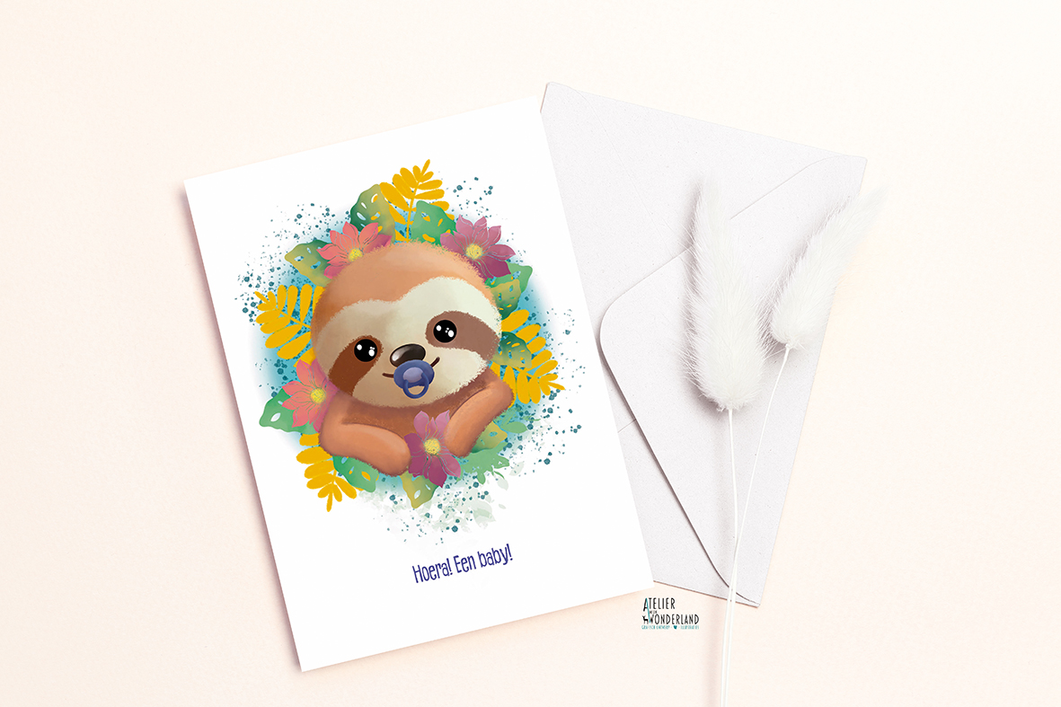 Vier de komst van een kleintje met deze schattige luiaardkaart.