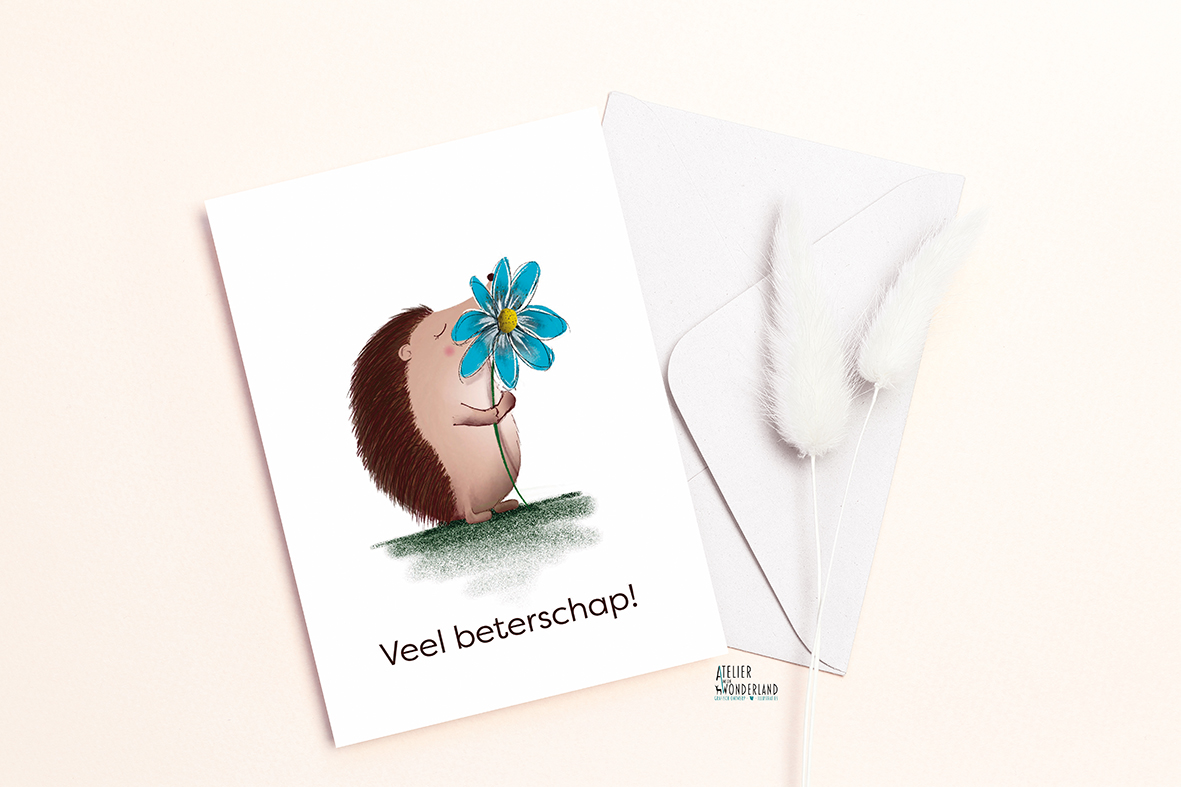 De lieve egel met zijn blauwe bloem brengt een glimlach en wat troost in moeilijke dagen. Perfect om iemand op te vrolijken of gewoon te laten weten dat je aan hen denkt.
